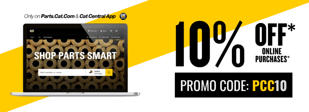 Only available online on PARTS.CAT.COM and the Cat® Central App. Users must be logged into their account to use the promotion code. Promotion available now through December 31st, 2025.
